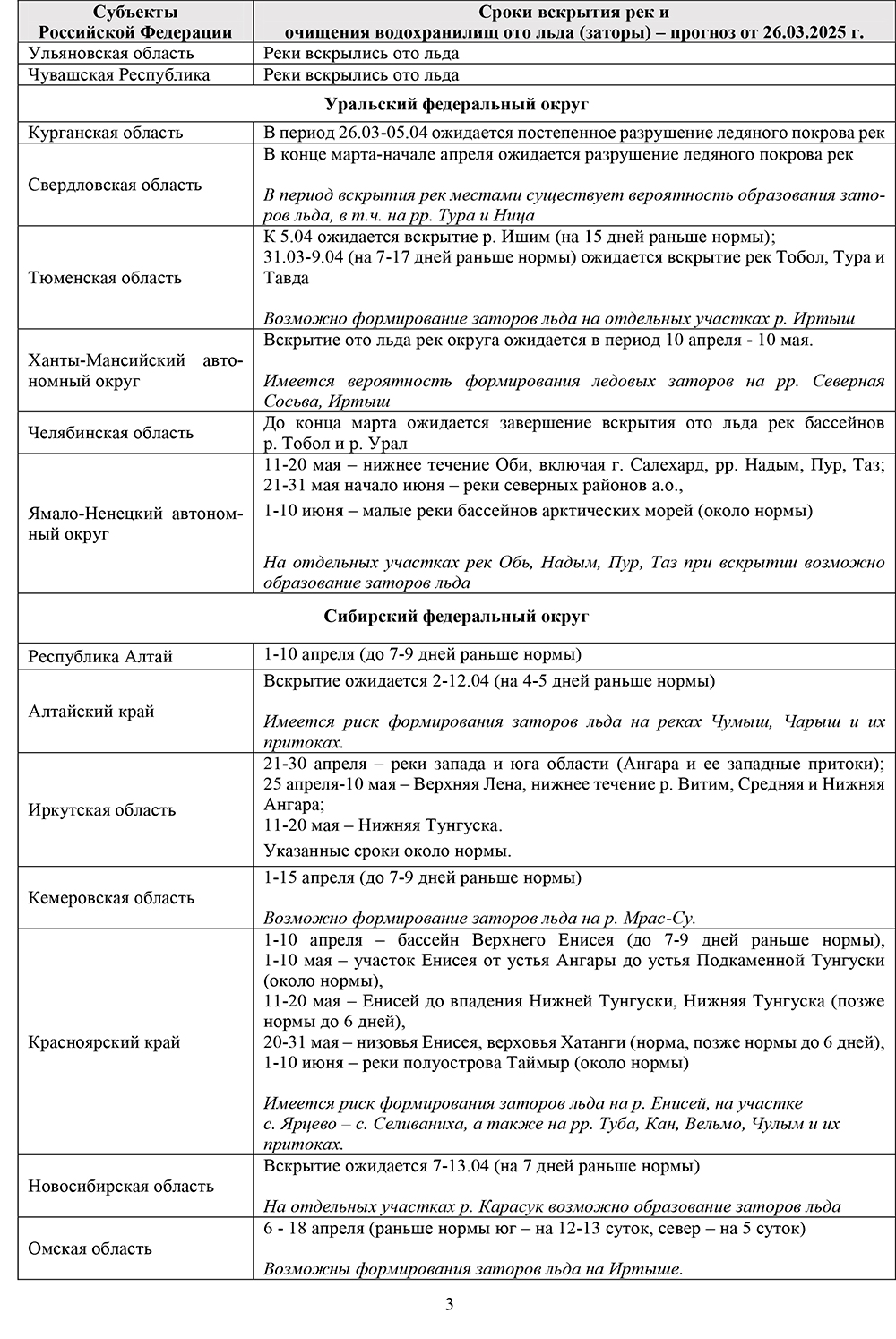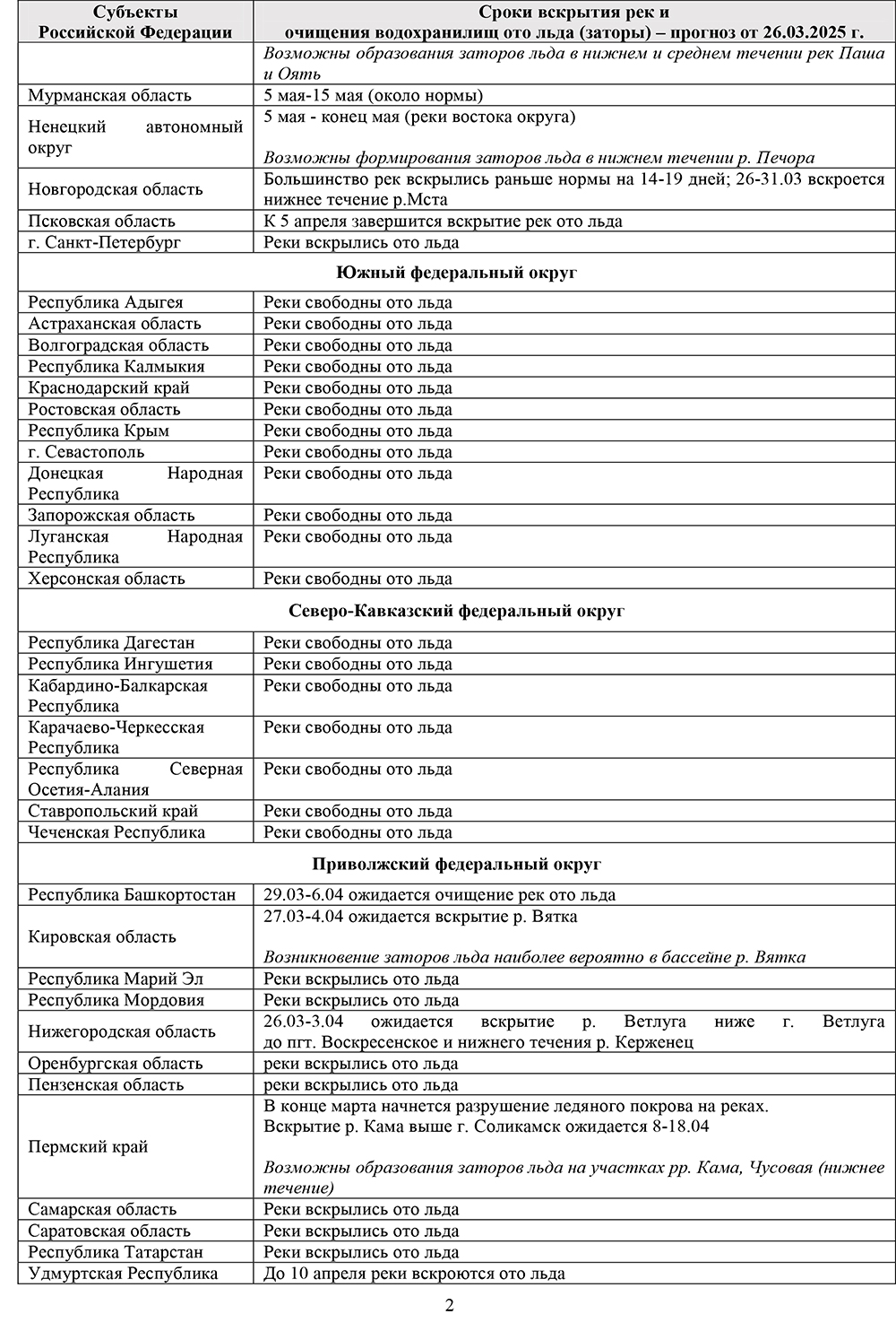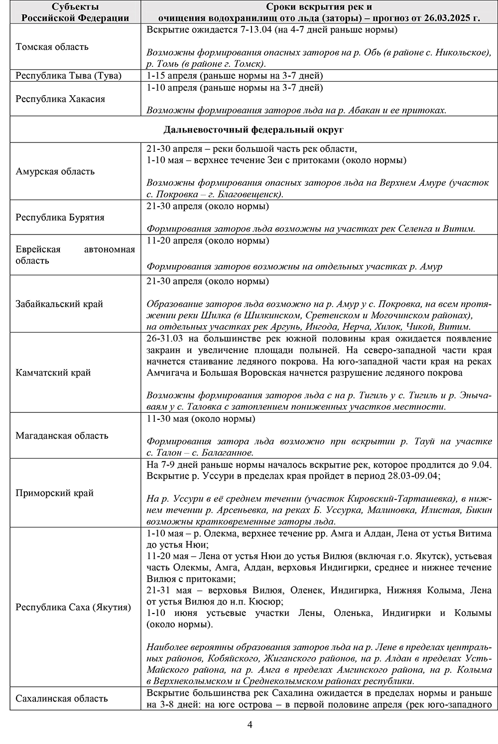 Пресс-релизы / Прогнозы вскрытия рек и наивысших уровней половодья на территории субъектов Российской Федерации в 2025 году