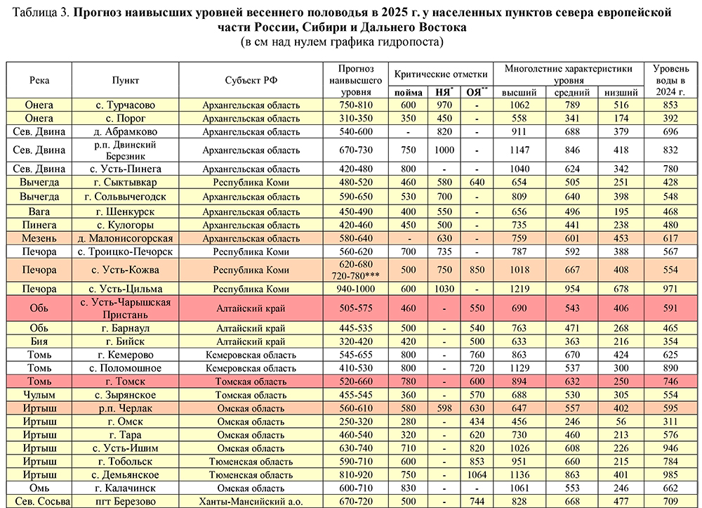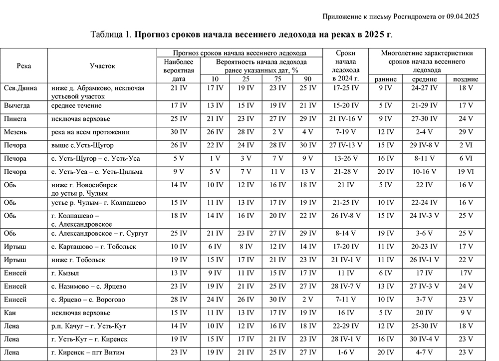 Пресс-релизы / Прогнозы вскрытия рек и наивысших уровней половодья на территории субъектов Российской Федерации в 2025 году (выпущены 10.04.2025)