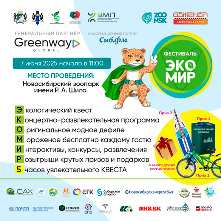 В рамках празднования Всемирного дня охраны окружающей среды 7 июня 2025 года на территории Новосибирского зоопарка им. Р.А. Шило состоится семейный экологический фестиваль «Экомир».