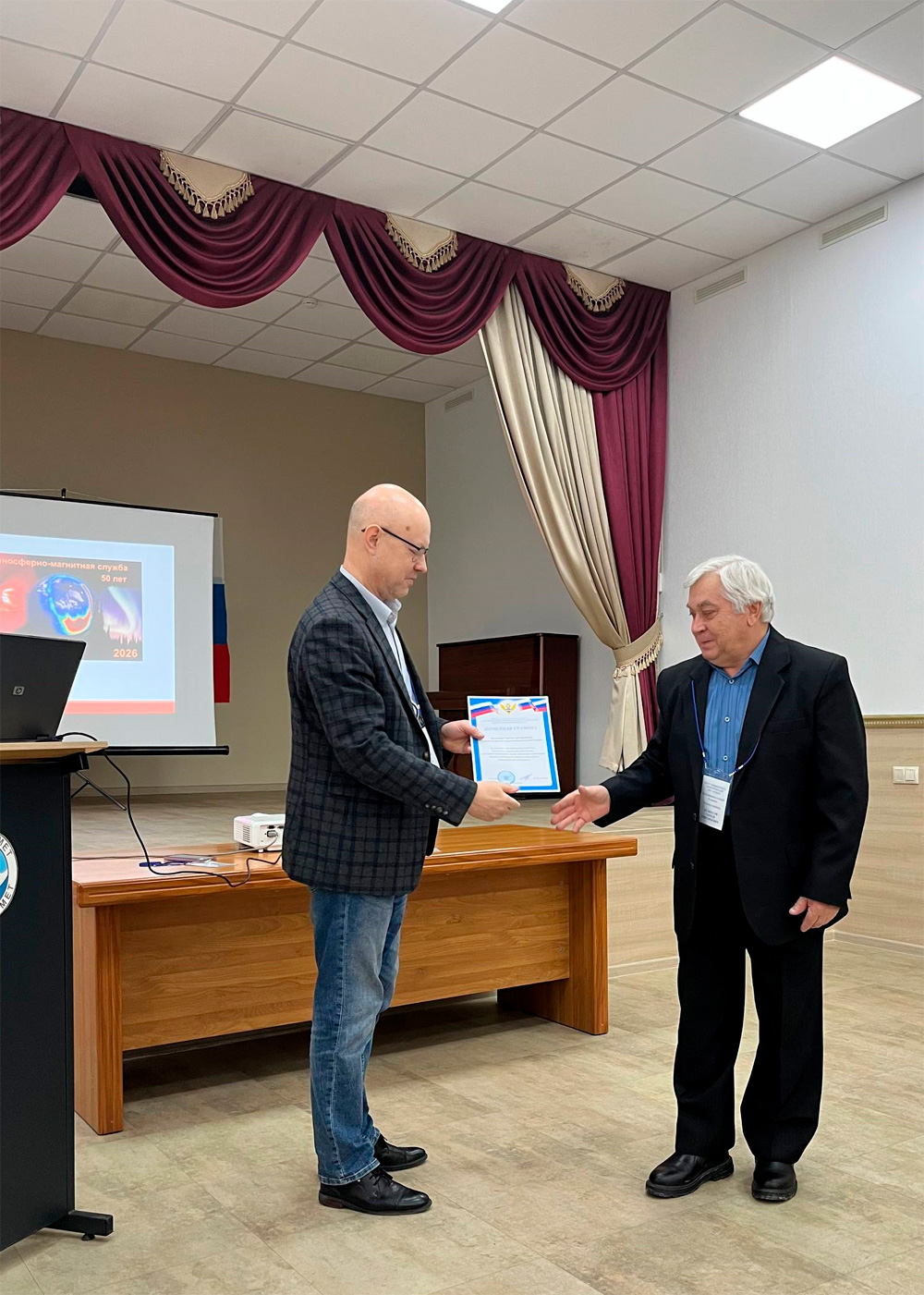 Гостям была показана презентация «Особенности 25-го солнечного цикла. Вариации магнитного поля Земли и состояние ионосферы в текущем цикле». Коллектив Центра принимал поздравления и памятные подарки от деловых партнёров.