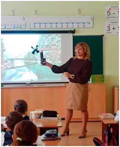 Показ настоящих метеоприборов вызывал яркие эмоции учеников, ведь картинка из презентации превращалась в реальность, которую можно было подержать в руках. По зашифрованным данным на картах определяли погоду. Завершилась встреча общей фотосессией, эмоциями детей и «обратной связью» от учителя.
