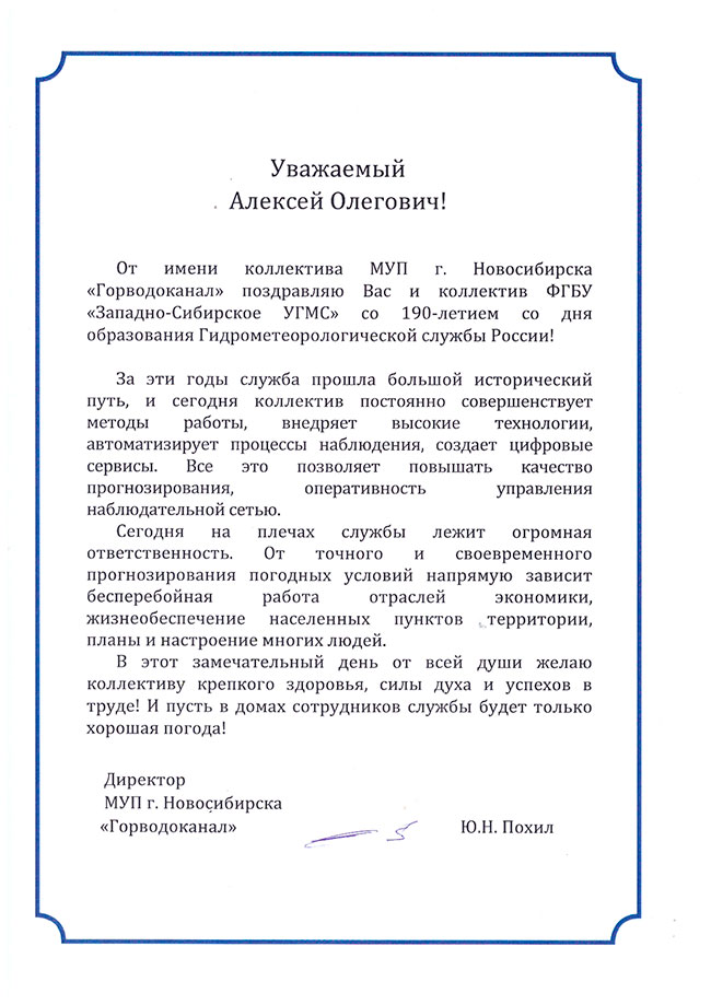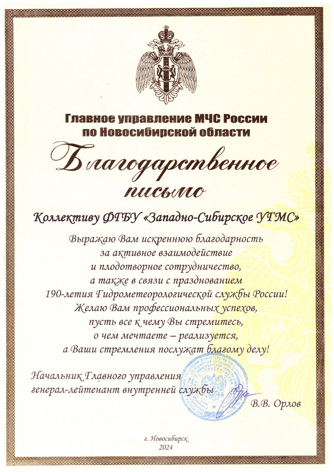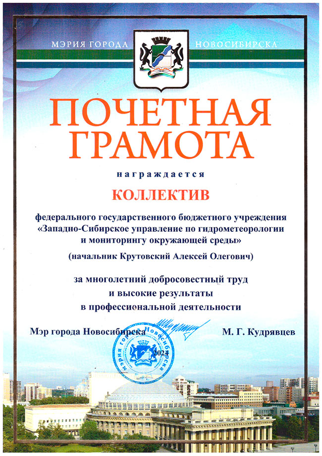 В четверг 12 сентября в Камерном зале филармонии в г.Новосибииске прошли поздравительные мероприятия, связанные с празднованием 190-летия Гидрометеослужбы России. Коллектив ФГБУ “Западно-Сибирское УГМС” был награжден рядом грамот и благодарственных писем.