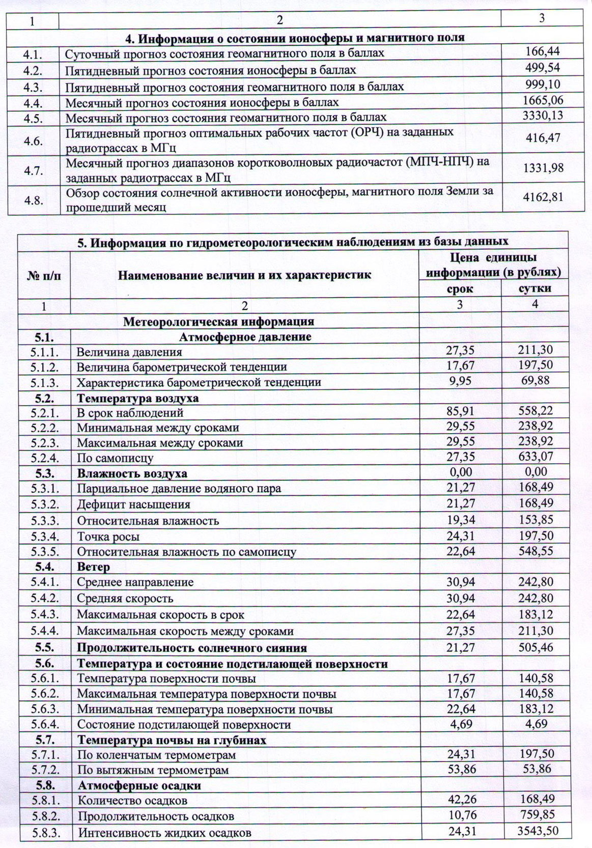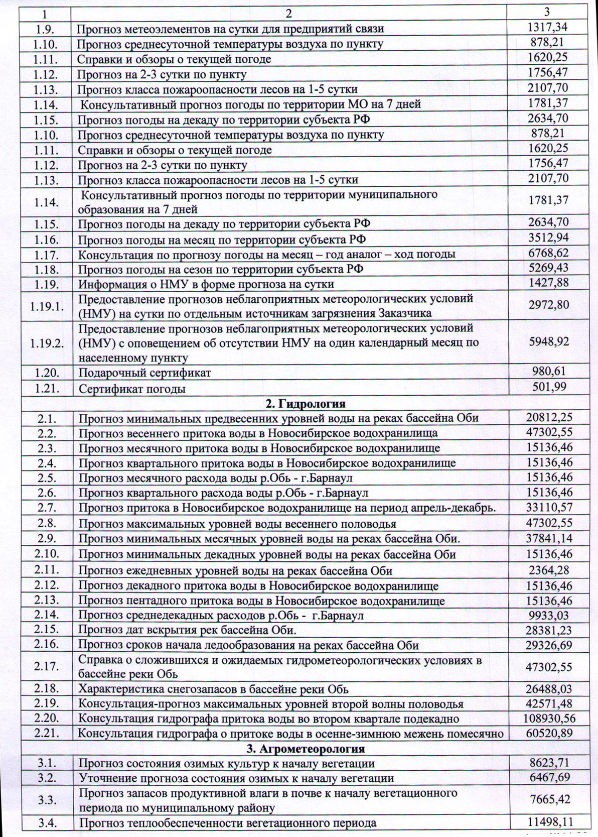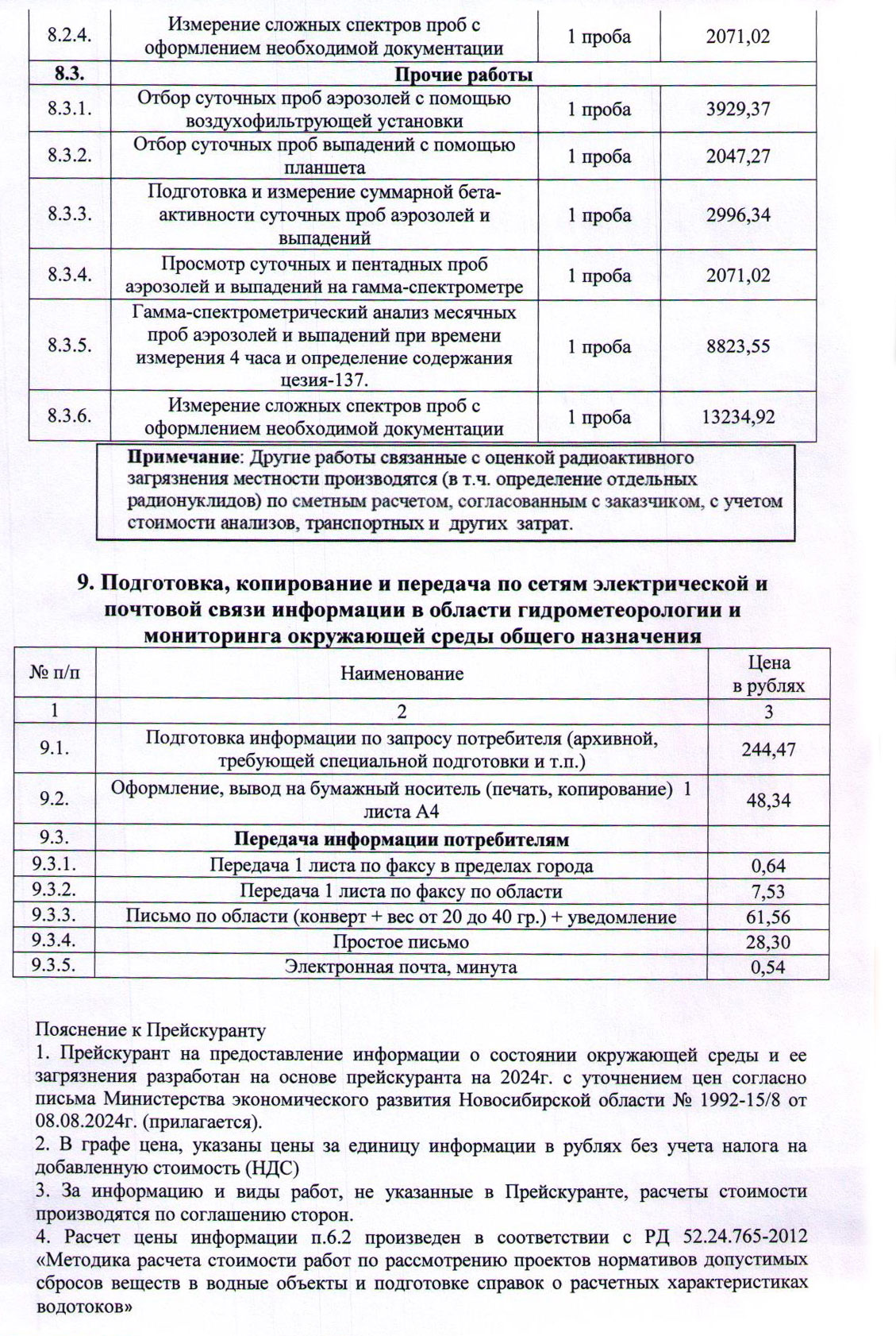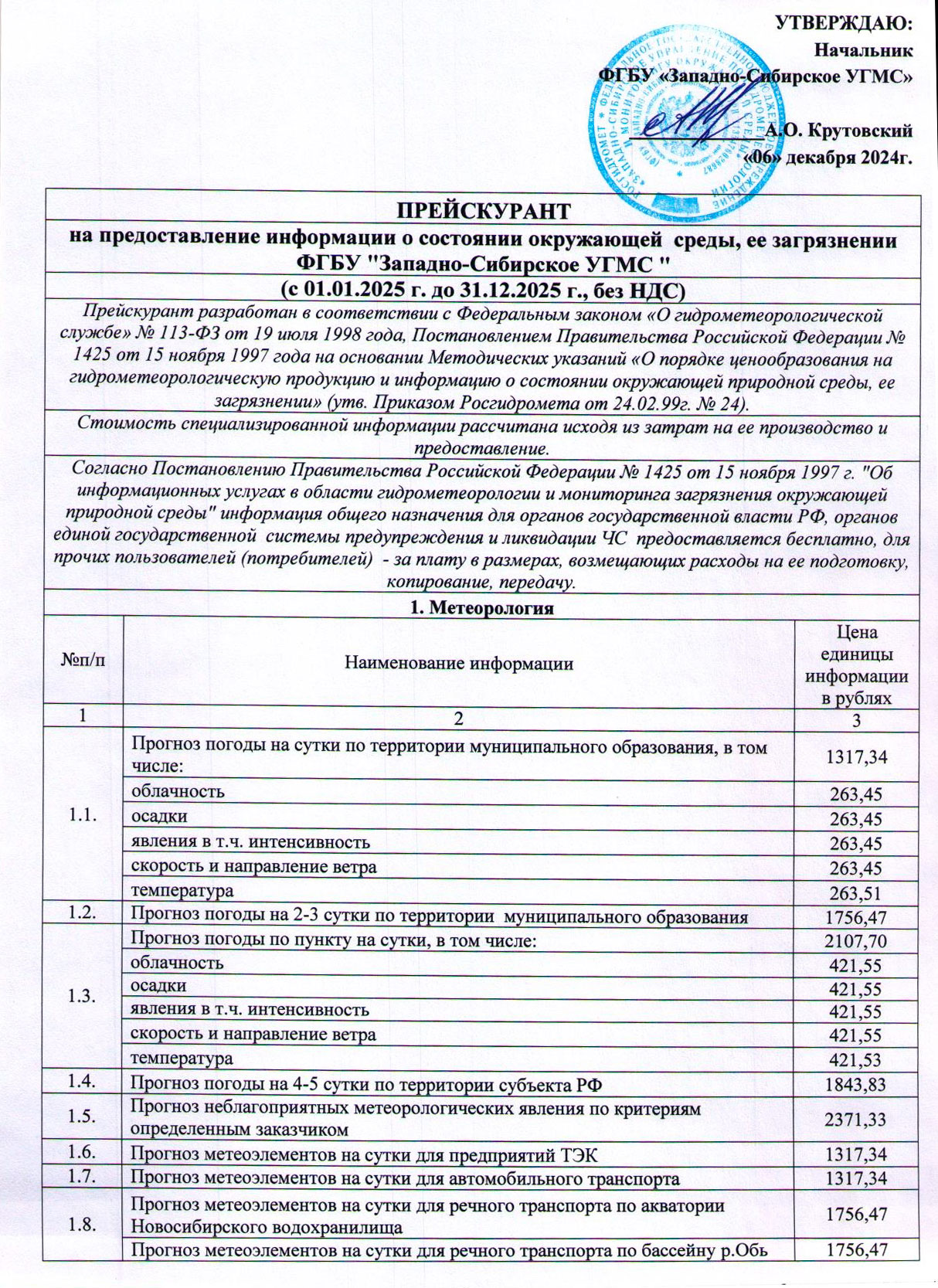 Прейскурант 2025